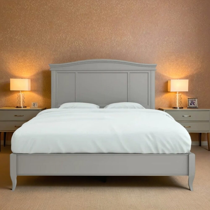 Элегантная двуспальная кровать со спальным местом 160x200 см, в сером цвете из коллекции Majessa бренда Aletan арт. М206G. Кровать Маджесса в неоклассическом американском стиле изготовлена из высококачественных материалов: массива бука, МДФ и берёзовой фанеры, что обеспечивает надёжность, стабильность и долговечность даже при интенсивной эксплуатации. Мебель Маджесса доступна в четырёх базовых цветах: