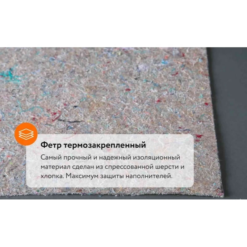 - Термофиксированный фетр. Снимает трение слоев матраса, плавно распределяет давление от пружин - 0,5 см
