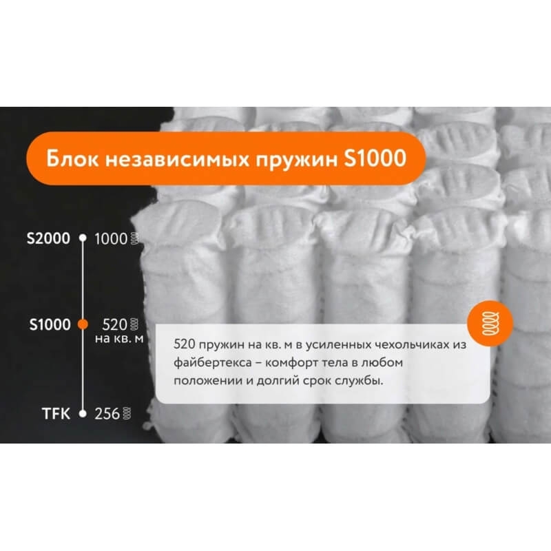✓ Высокая плотность расположения пружин создает идеально ровную поверхность.