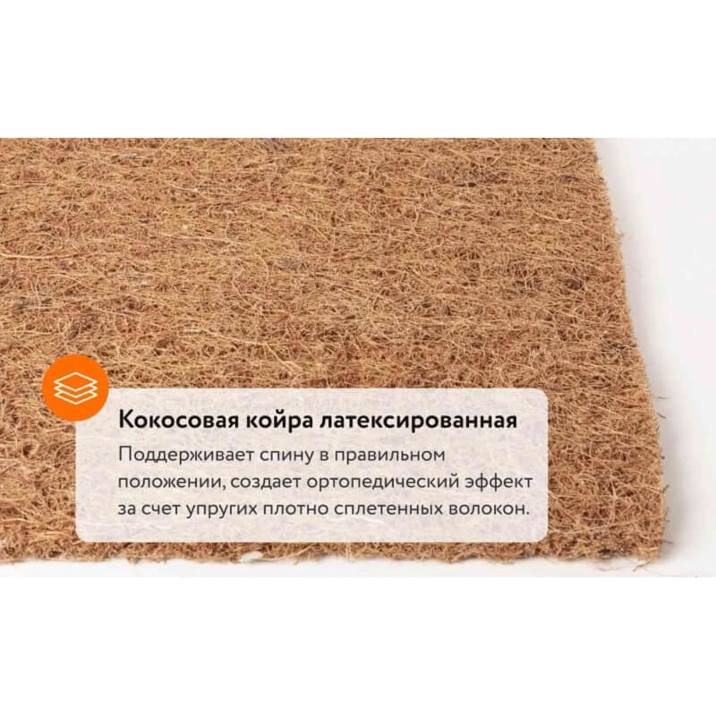 - Слой латексированного кокосовой койры. Выравнивающий и увеличивающий жёсткость материал (плотность 100 г/м2) — 1 см