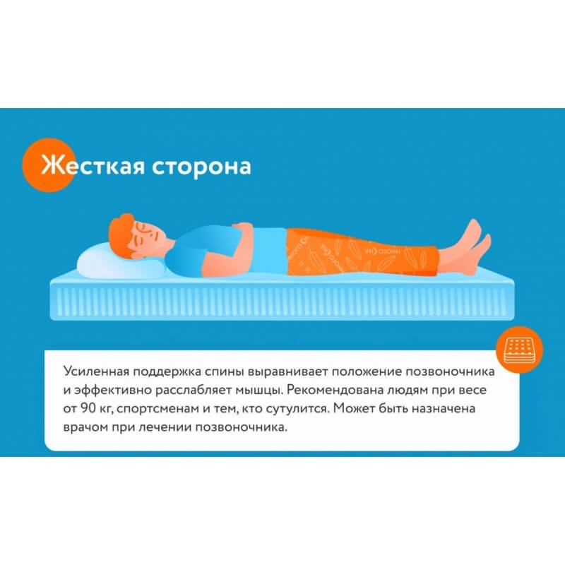 - Каждая сторона имеет среднюю жесткость: среднюю и жёсткую.