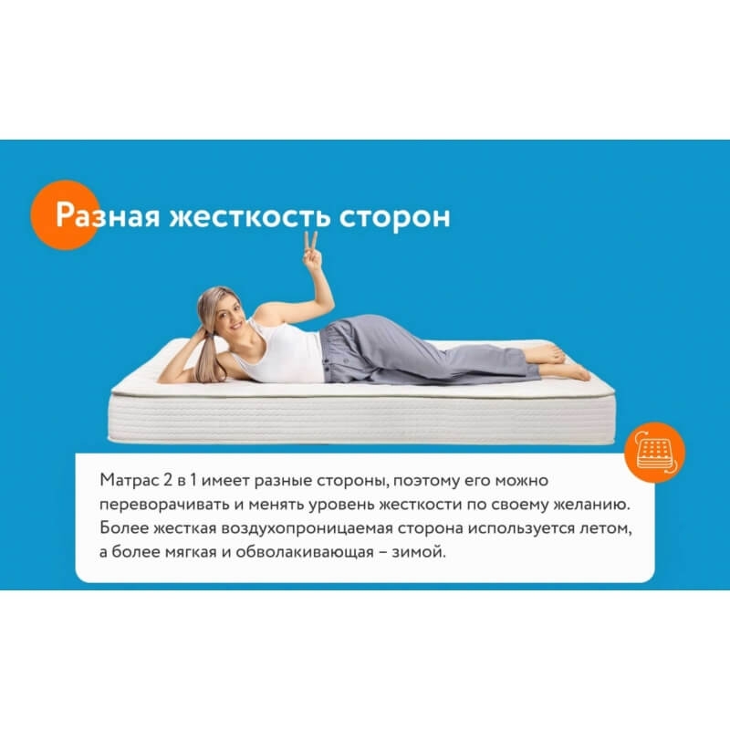 • Чехол из файбертекса хорошо защищает пружины от взаимного трения, продляя срок службы матраса.
