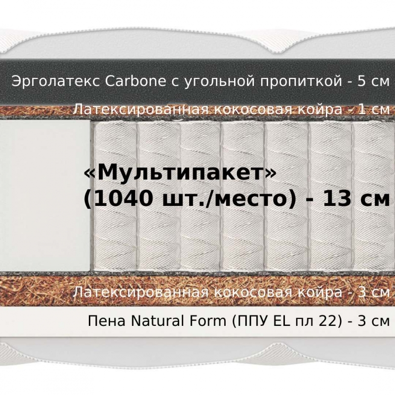 - Независимый пружинный блок «Мультипакет 1040» в файбертексе (1040 пружин на спальное место) — 13 см