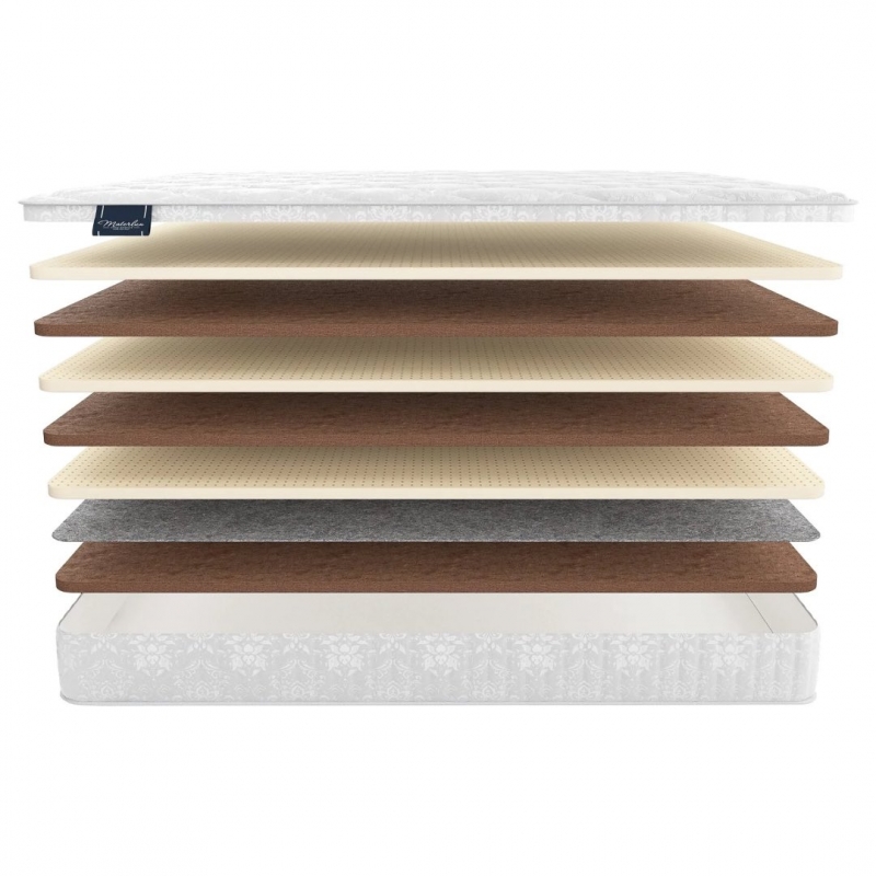 Двусторонний беспружинный жёсткий анатомический матрас серии Elite: Sanremo (Санремо) от российско-итальянского ателье Materlux, с эластичными слоями натурального латекса и латексированного кокоса.