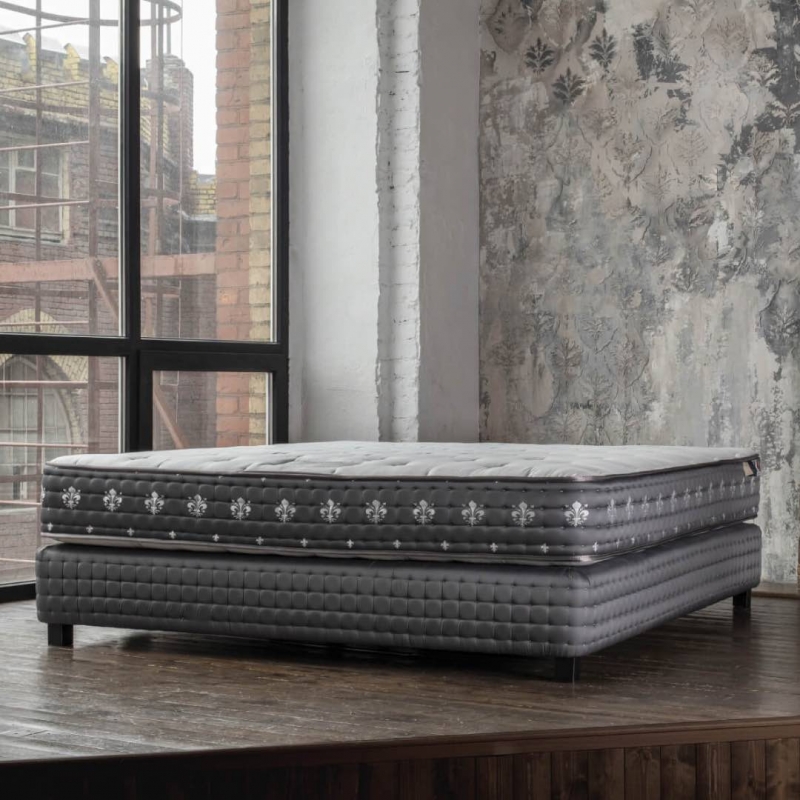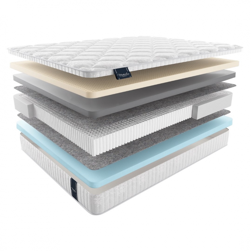 Премиальный матрас фабрики MaterLux, модель Mortirolo серии Premium, с толстым слоем натурального бельгийского латекса и адсорбирующего эрголатекса Carbone, все это собрано на уникальном блоке адаптивных пружин Микропакет 2000.