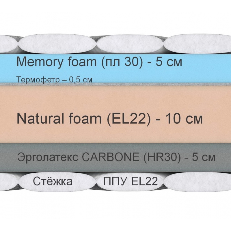 Создан на основе сочетания современных анатомических пен, инновационного эрголатекса Carbone и комфортного слоя Memory Foam. Матрас обладает разной степенью упругости на каждой стороне — для точного подбора под индивидуальные ощущения и стиль сна.