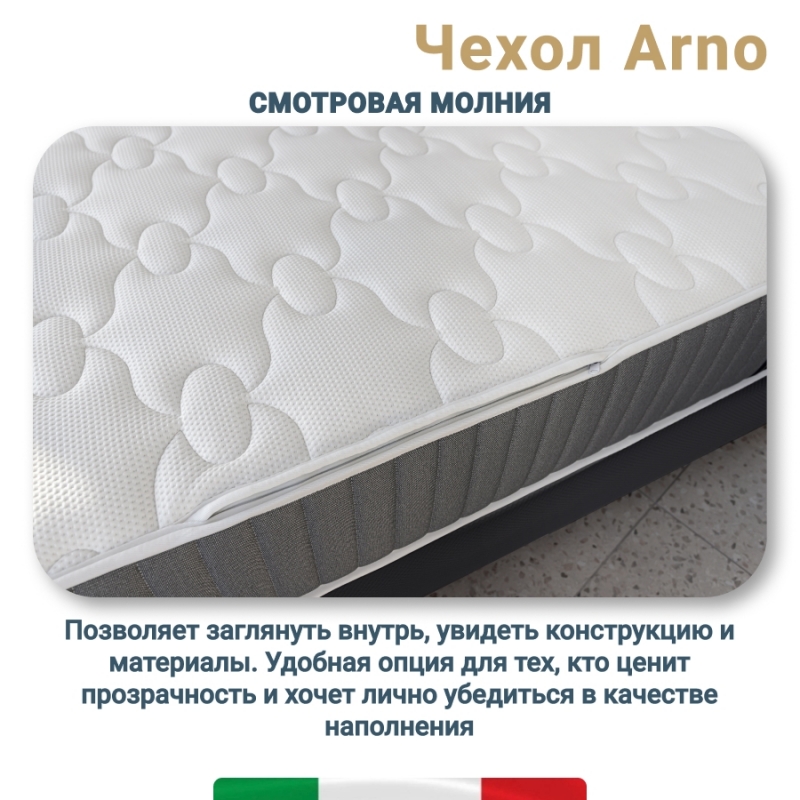 Создан на основе современных материалов: слой натурального латекса (Бельгия), анатомическая пена Natural Foam, латексированный кокос. Основа матраса: пружинный блок независимых пружин в файбертексе - "Мультипокет", 1040 пружин на спальное место с кармашками из файбертекса.