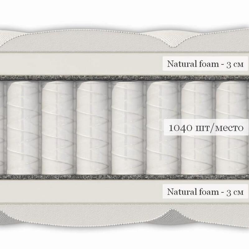 В основе матраса блок независимых пружин "Мультипакет" (Multipocket), высотой 13 см: 1040 пружин на спальное место. Пружины упакованы в чехлы из долговечного файбертекса. Размер 140х200 см.