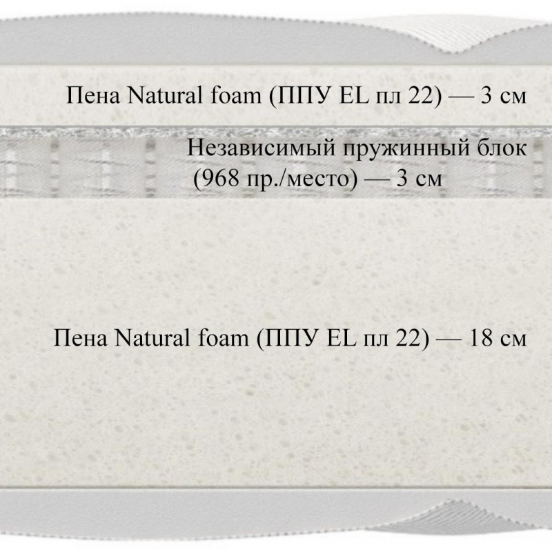 Благодаря универсальной пене Natural Foam матрас ощущается плотным и устойчивым, способен принимать прежнюю форму в считанные секунды, а также сохраняет эластичность на протяжении всего срока использования.