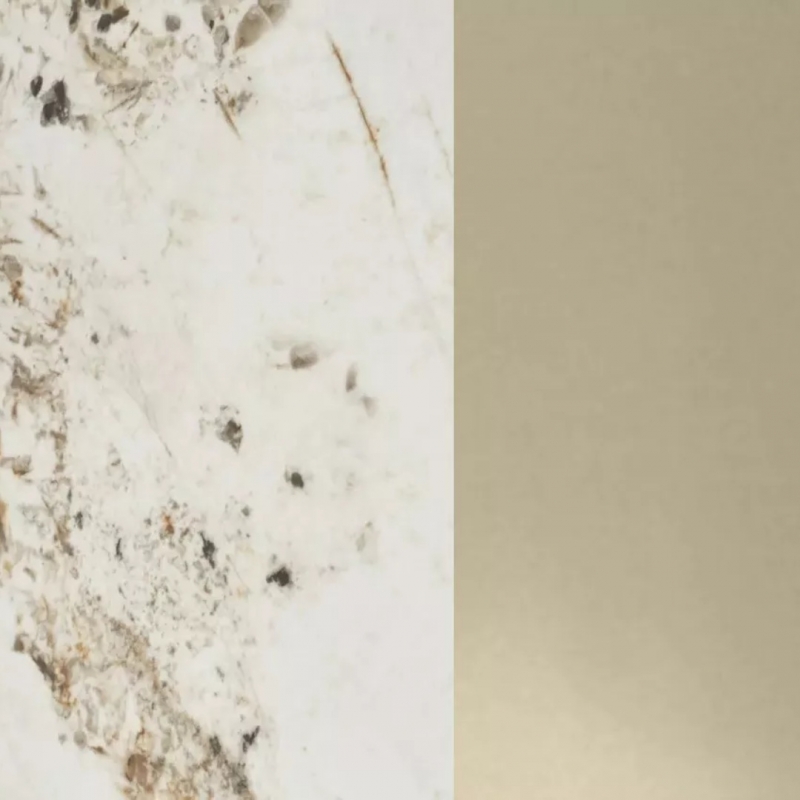 Столешница выполнена из монолитной глянцевой керамики в декоре Luxury Pandora с изысканным мраморным рисунком в бело-коричневых тонах. Поверхность устойчива к механическим повреждениям, перепадам температур, не впитывает жидкость и легко очищается. Толщина столешницы составляет 11 мм.