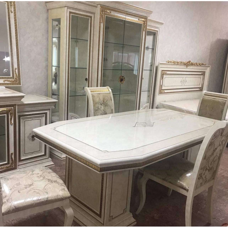 " ["description_short"]=> string(912) "Элитный раскладной итальянский обеденный стол Leonardo с 1 вставкой от фабрики Arredo Classic (Арредо Классик) выполнен в изысканном классическом стиле. Столешница и опоры оформлены в благородном оттенке слоновой кости с мраморной текстурой и украшены объёмными элементами и золотистыми деталями. В разложенном виде размеры стола составляют 250×110 см, в сложенном — 200×110 см, что делает его одновременно элегантным и практичным решением для столовой.
