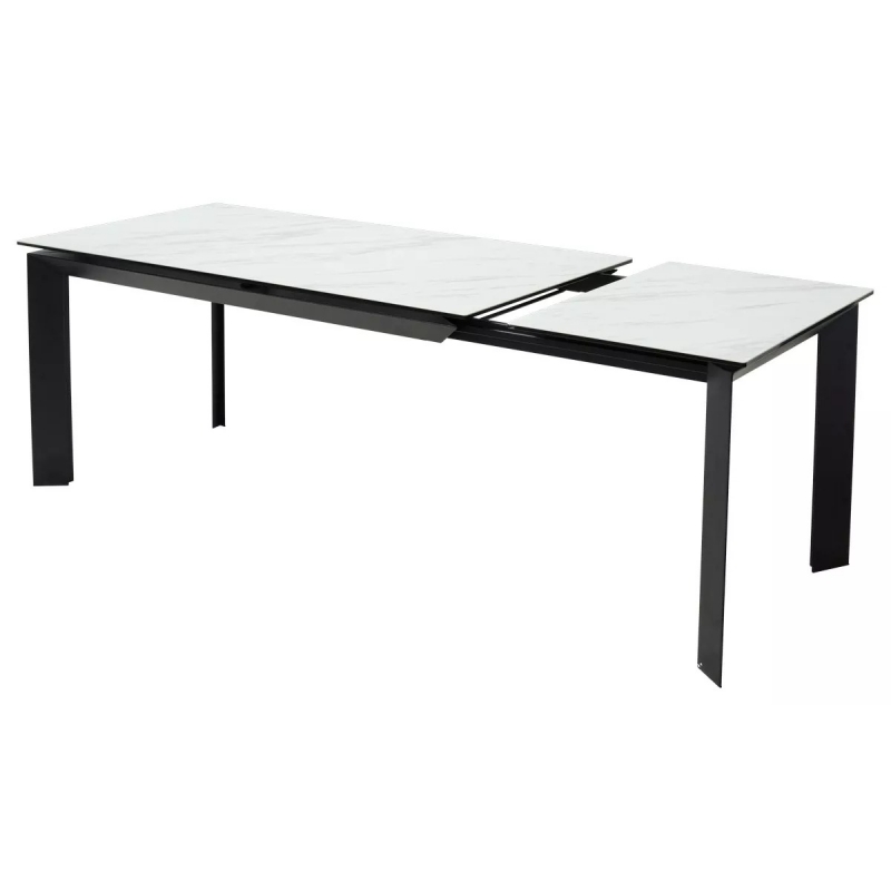 Прямоугольный раздвижной обеденный стол Cremona от бренда Qwerica Home (Q-Home), арт. QHDECDF501TKL99BLK140 — современное решение для гостиной или кухни в стиле минимализм. Размер стола — 140×85 см в сложенном виде и 200×85 см в разложенном, что позволяет комфортно разместить 4–6 персон.