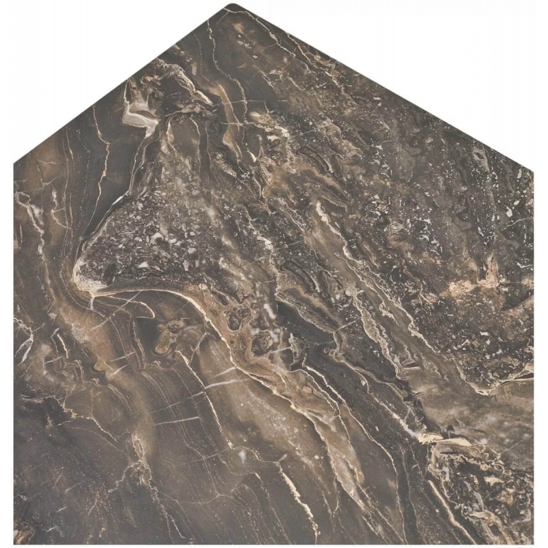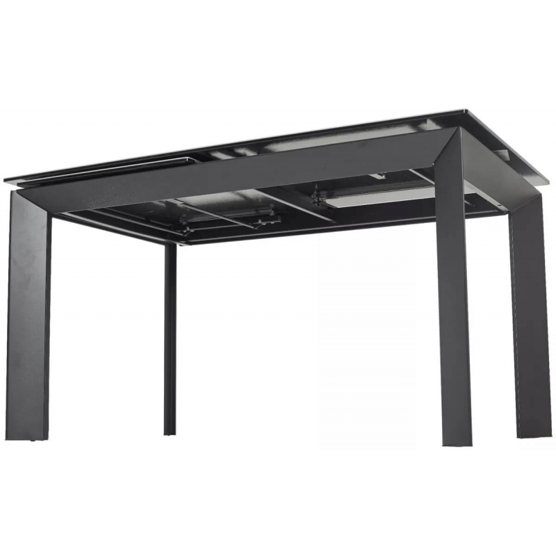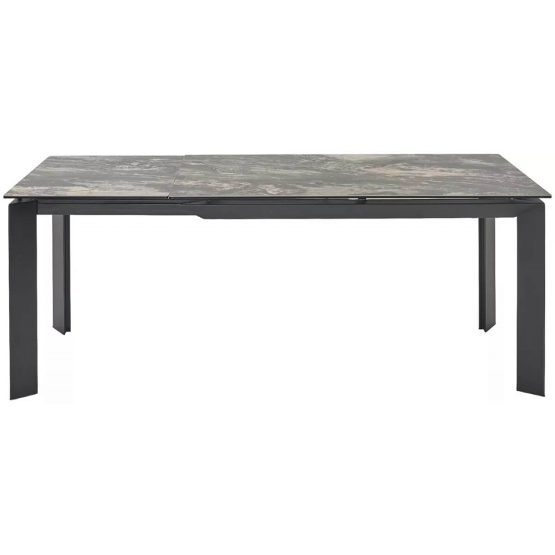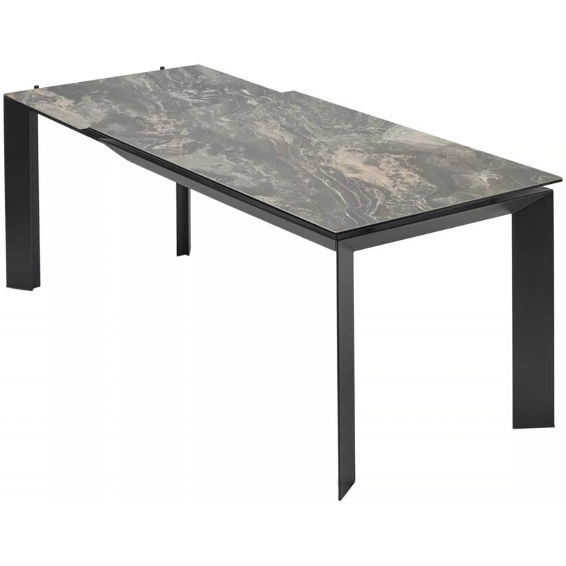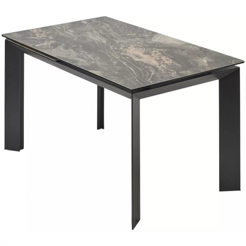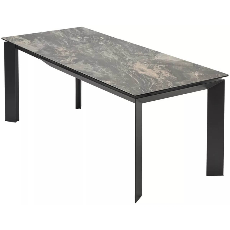 Столешница выполнена по технологии «керамика на стекле» (толщина 13 мм: 3 мм керамика + 10 мм стекло). Матовая керамика «под контрастный черный мрамор» придаёт столу выразительный и стильный вид, устойчива к царапинам и загрязнениям, легко очищается и выдерживает перепады температур.