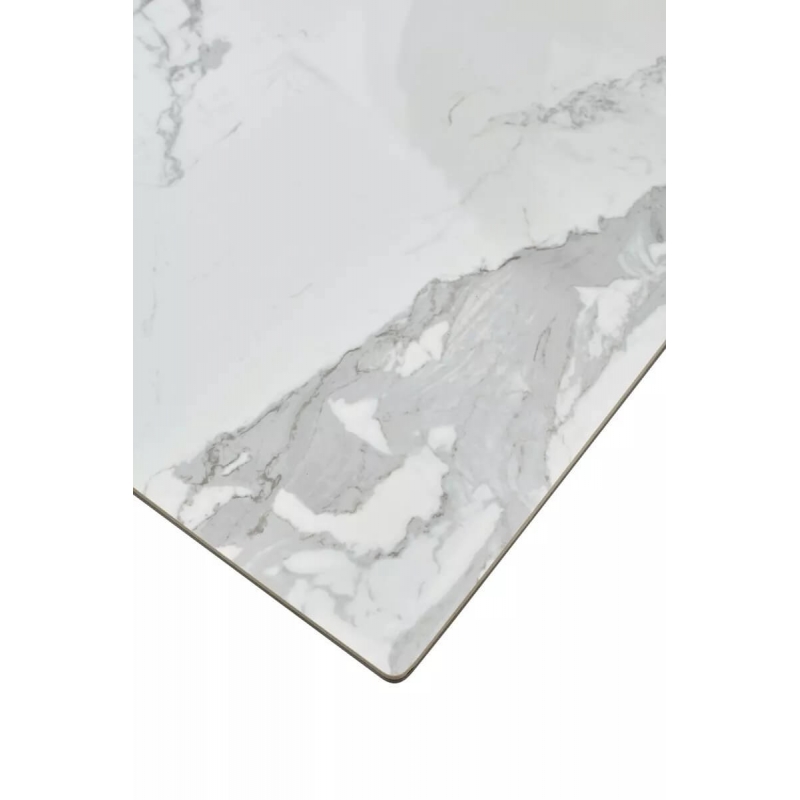 Столешница выполнена по технологии «керамика на стекле» (толщина 13,5 мм: 5,5 мм керамика + 8 мм закалённое стекло). Глянцевая керамика в оттенке Белый мрамор устойчива к царапинам, не впитывает влагу, легко очищается и выдерживает перепады температур. Эффектный глянец придаёт интерьеру ощущение лёгкости и визуально расширяет пространство.