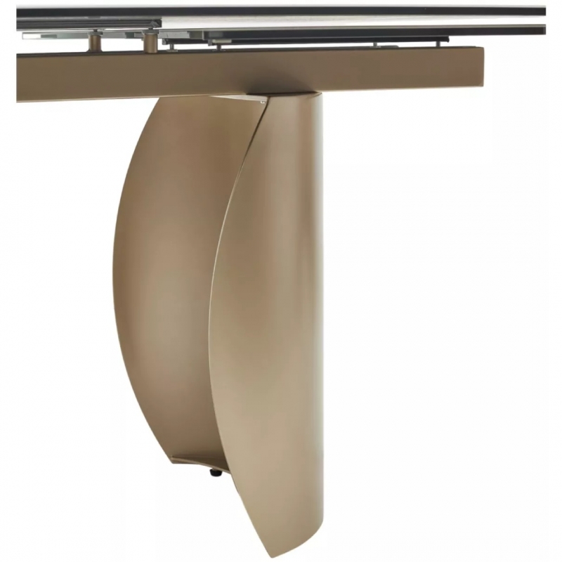 Прочное металлическое основание в цвете шампань обеспечивает отличную устойчивость, а продуманная конструкция позволяет комфортно размещаться за столом без помех для ног. Модель поставляется в трёх коробках для удобства транспортировки.
