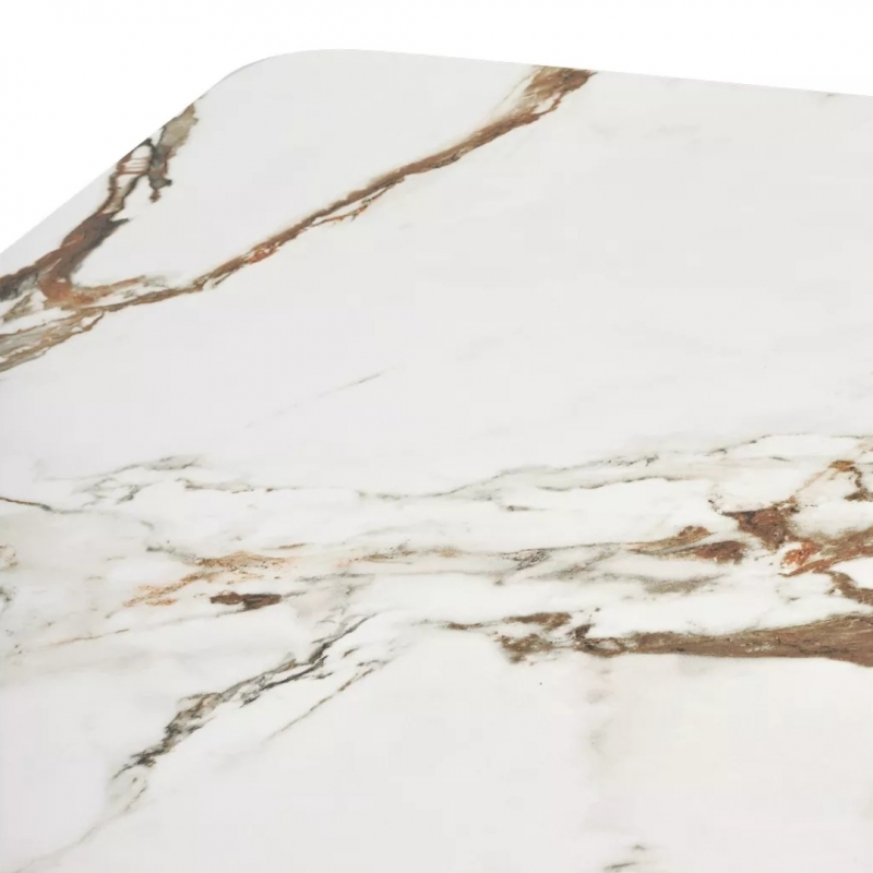 Столешница выполнена из итальянской матовой керамики толщиной 13 мм (3 мм керамика + 10 мм стекло). Материал устойчив к царапинам, загрязнениям и воздействию высоких температур. Поверхность не впитывает влагу и проста в уходе, сохраняя премиальный внешний вид на долгие годы. Эффектный декор контрастный мрамор подчёркивает современный стиль интерьера и добавляет композиции выразительности.
