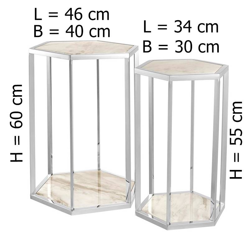 Материалы приставного стола Eichholtz Taro набор из 2: нержавеющая сталь/мрамор