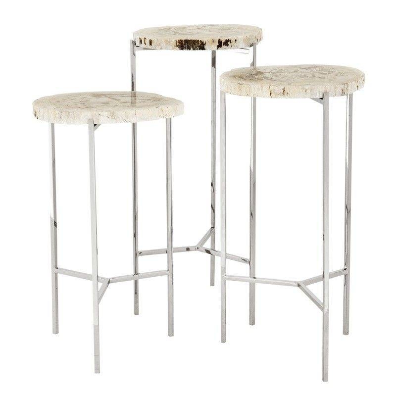 Материалы приставного стола Eichholtz Newson Набор из 3: окаменелое дерево/чугун