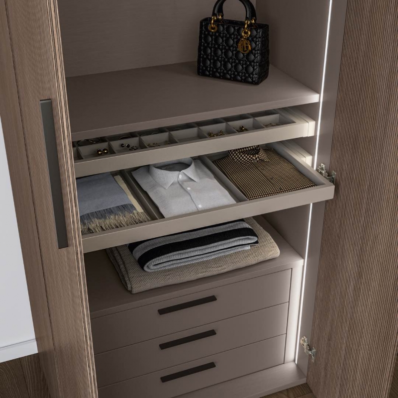 Дизайнерский вместительный распашной четырехдверный шкаф в современном стиле из коллекции Hexagon итальянской фабрики Status Italy, арт. HEBCNAR14. Двери шкафа Гексагон Статус Итали имеют петли с демпферами плавного закрывания. Внутренняя часть ящиков покрыта материалом устойчивым к царапинам. Отделка Honey Ribbed на панелях (18 мм): Придает шкафу теплоту и текстуру, делая его уникальным и привлекательным.