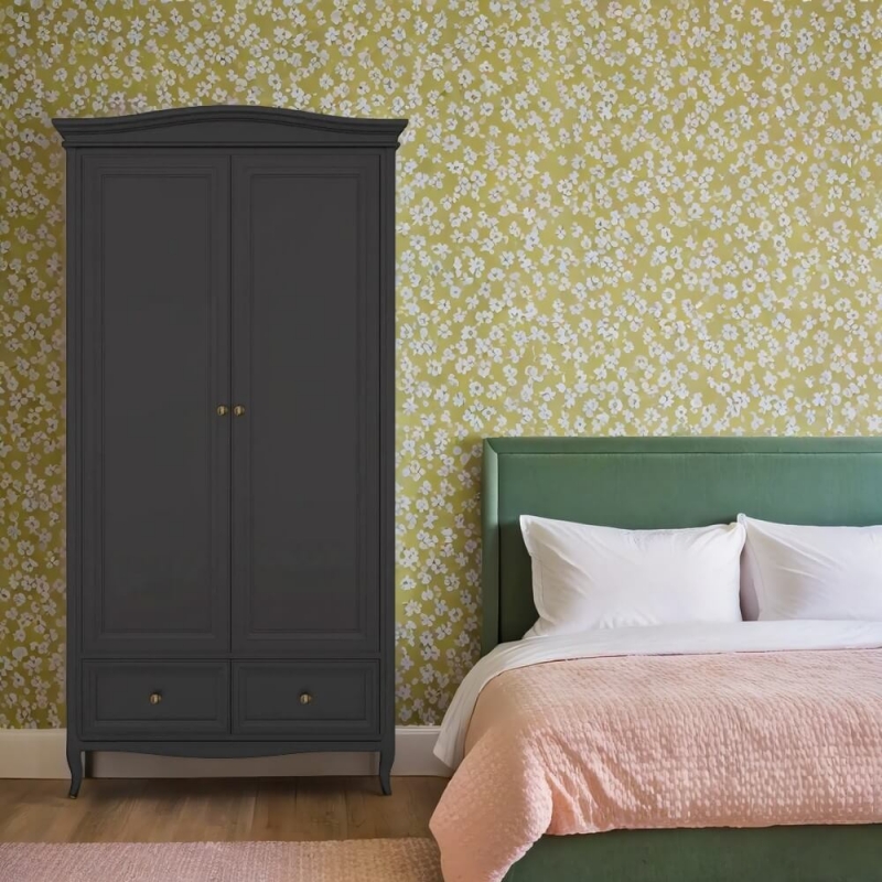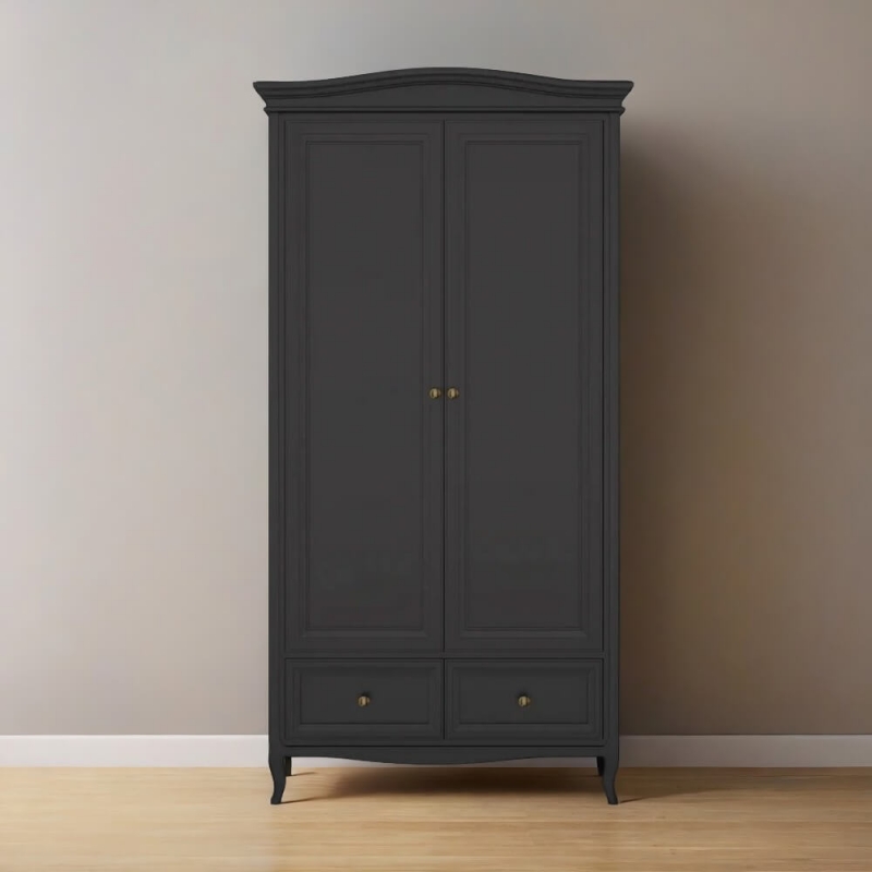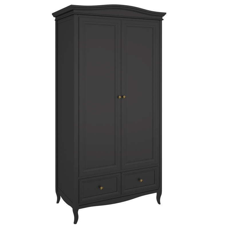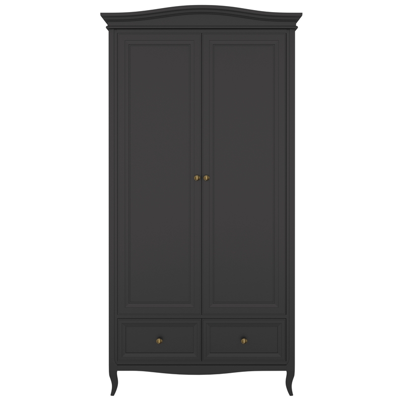 Стильный небольшой двухдверный шкаф Majessa (Aletan, арт. М802BL) с двумя ящиками, в чёрном цвете — элегантное решение для спальни в неоклассическом стиле. Шкаф Алетан Маджесса изготовлен из массива дерева и МДФ с многослойной эмалевой отделкой, гарантирующей долговечность.