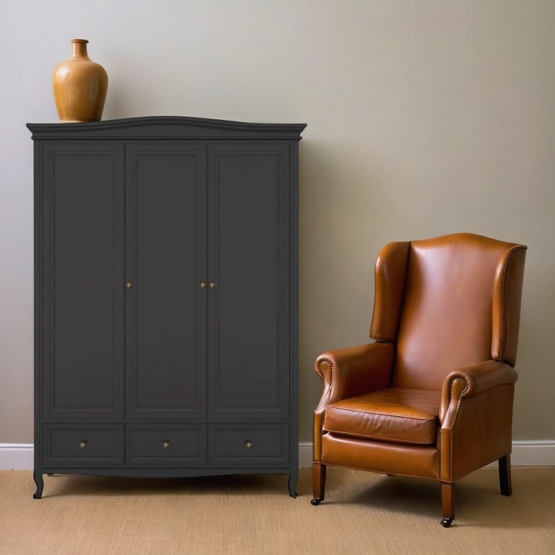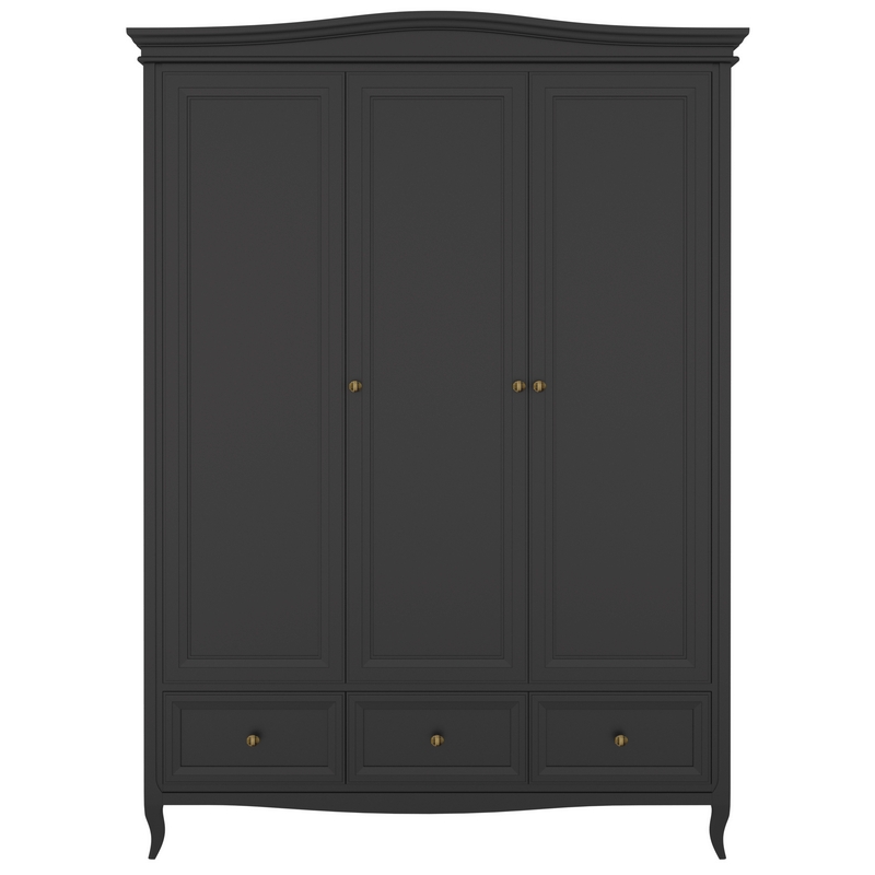 Стильный трехдверный шкаф Majessa (Aletan, арт. М803BL) с тремя ящиками, в чёрном цвете — элегантное решение для спальни в неоклассическом стиле. Шкаф Алетан Маджесса изготовлен из массива дерева и МДФ с многослойной эмалевой отделкой, гарантирующей долговечность.