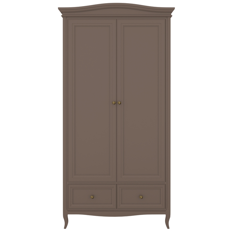 Стильный небольшой двухдверный шкаф Majessa (Aletan, арт. М802Q) с двумя ящиками, в коричневом цвете — элегантное решение для спальни в неоклассическом стиле. Шкаф Алетан Маджесса изготовлен из массива дерева и МДФ с многослойной эмалевой отделкой, гарантирующей долговечность.