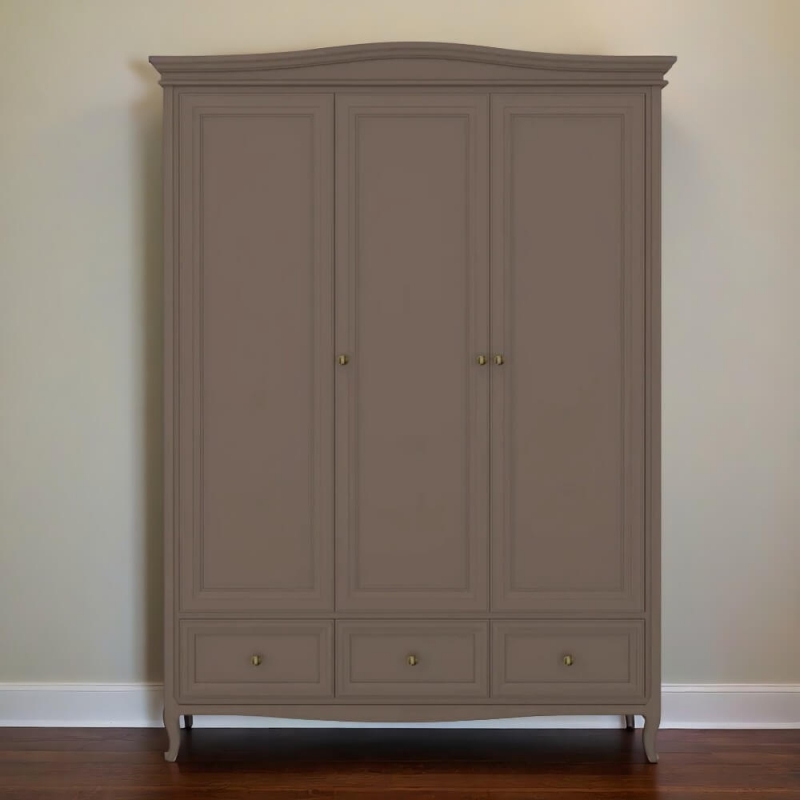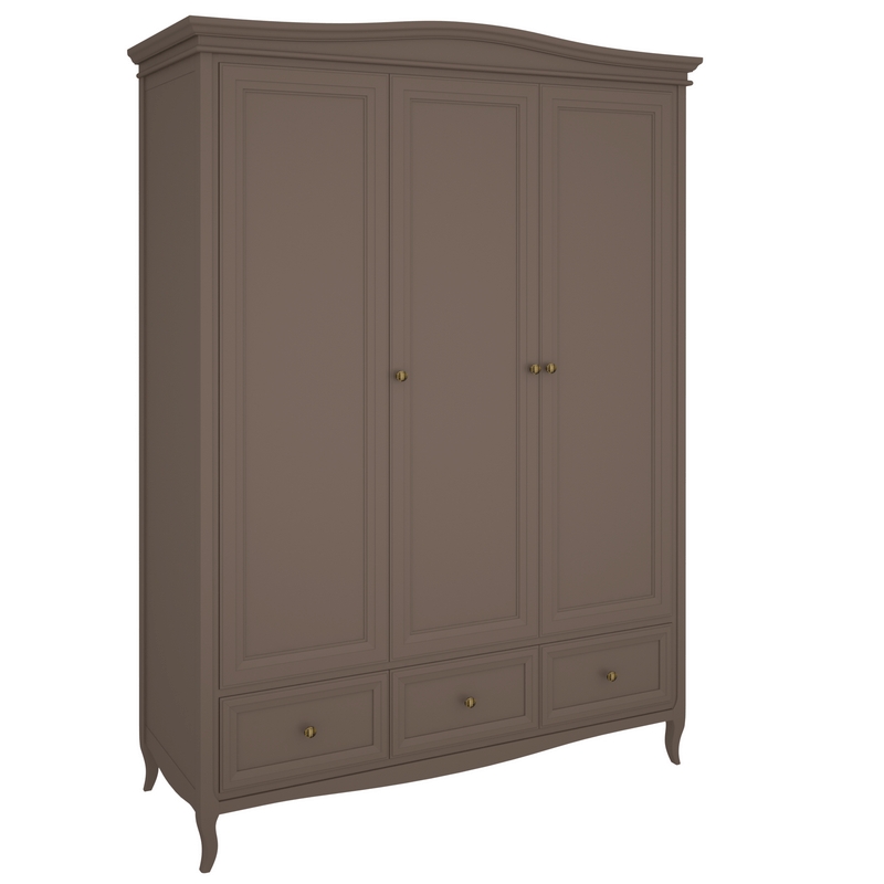 Стильный трехдверный шкаф Majessa (Aletan, арт. М803Q) с тремя ящиками, в коричневом цвете — элегантное решение для спальни в неоклассическом стиле. Шкаф Алетан Маджесса изготовлен из массива дерева и МДФ с многослойной эмалевой отделкой, гарантирующей долговечность.