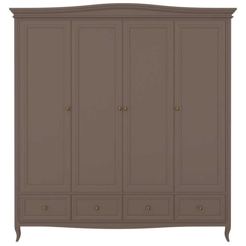 Стильный четырехдверный шкаф Majessa (Aletan, арт. М804Q) с четырьмя ящиками, в коричневом цвете — элегантное решение для спальни в неоклассическом стиле. Шкаф Алетан Маджесса изготовлен из массива дерева и МДФ с многослойной эмалевой отделкой, гарантирующей долговечность.