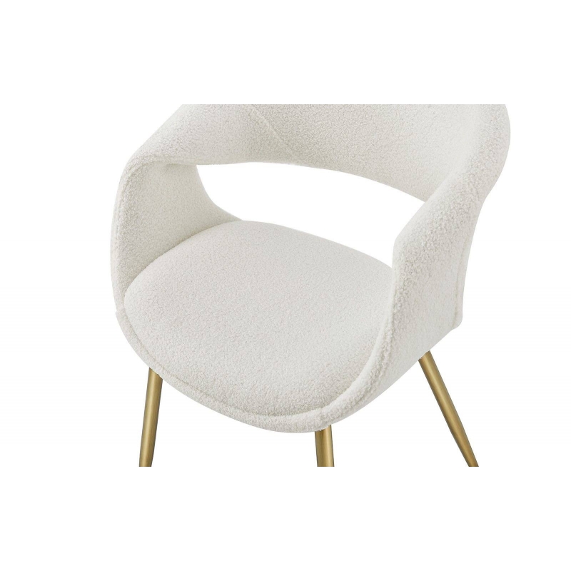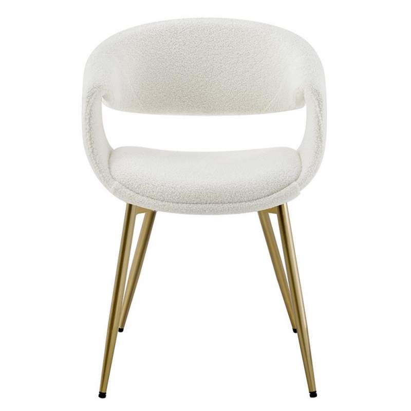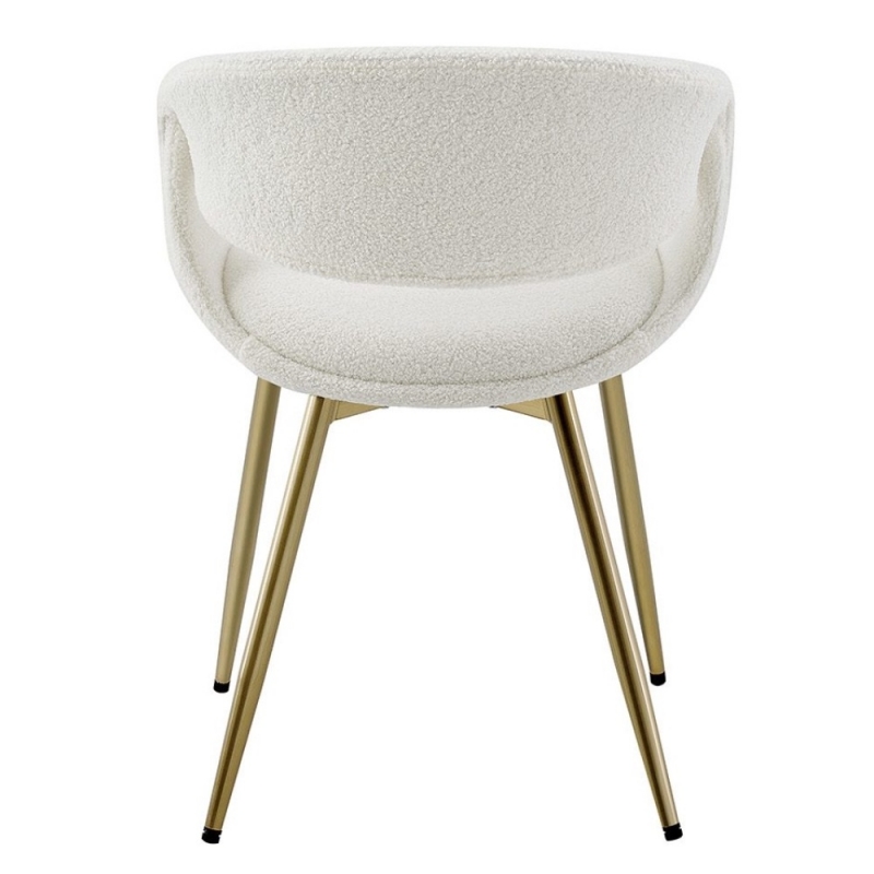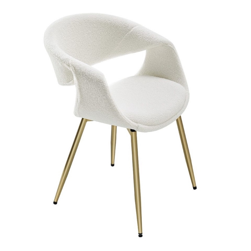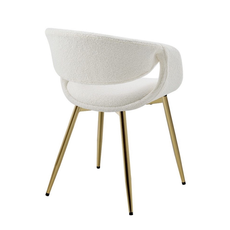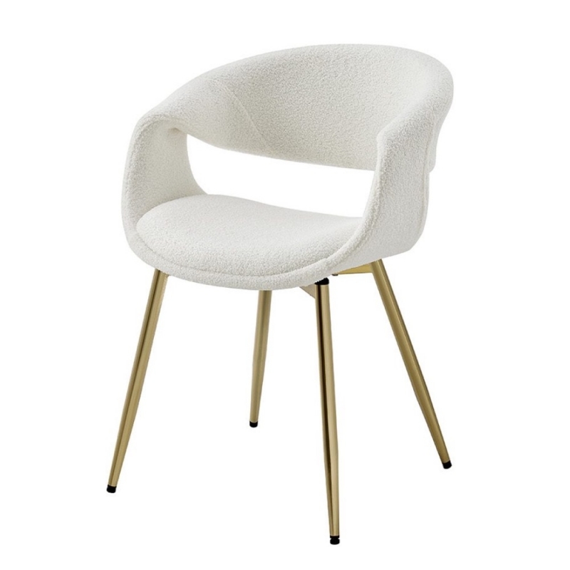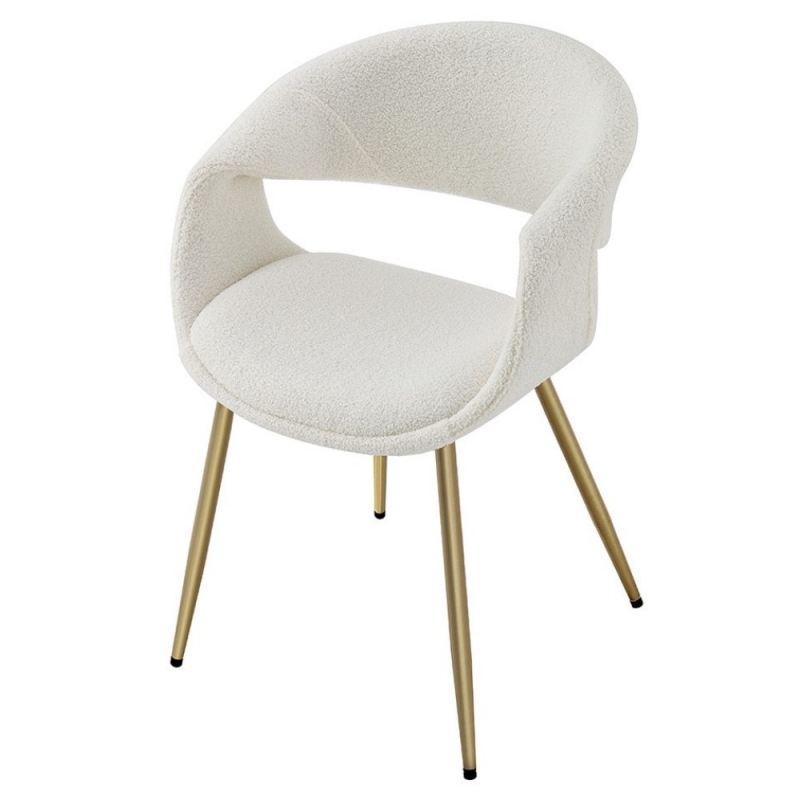 Комфортный дизайнерский стул модели Dolce (JY1829Q-T) бренда Qwerica Home (Q-Home). Стул имеет удобную поддерживающую спинку и подлокотники. Обивка: Букле молочного цвета. Ножки и спинка выполнены из металла брашированного под золото.