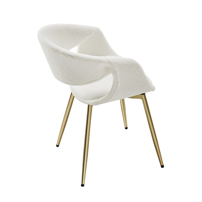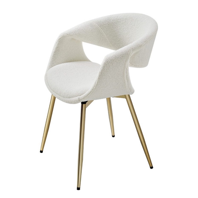 string(471) "Комфортный дизайнерский стул модели Dolce (JY1829Q-T) бренда Qwerica Home (Q-Home). Стул имеет удобную поддерживающую спинку и подлокотники. Обивка: Букле молочного цвета. Ножки и спинка выполнены из металла брашированного под золото.