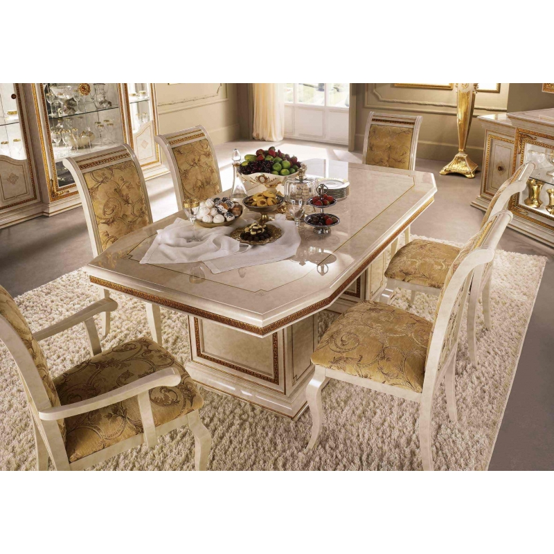 Итальянский стул с подлокотниками Leonardo от фабрики Arredo Classic (Арредо Классик) выполнен в изысканном классическом стиле, сочетающем элегантность форм и комфорт. Каркас в благородном оттенке слоновой кости с мраморной текстурой украшен объёмными элементами и золотистыми деталями. Сиденье и спинка обтянуты высококачественной тканью в бежево-золотых тонах, которые подчеркивают изысканный характер коллекции и обеспечивают удобство при использовании.