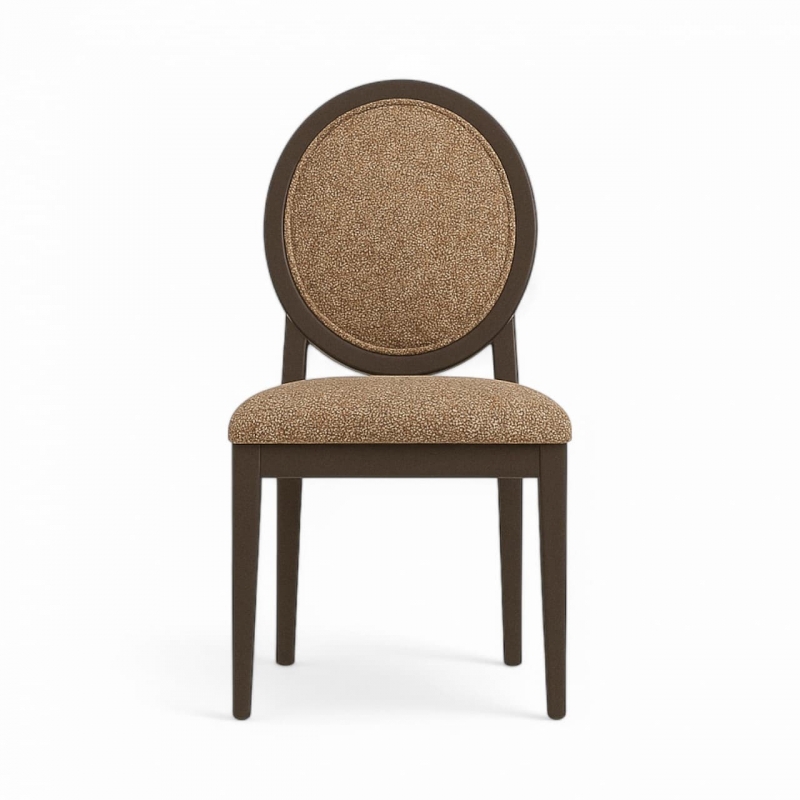 Классический стул из коллекции Венеция бренда Classico Italiano, арт. Т-110/MO/NA. Стул выполнен из прочной МДФ с отделкой шпоном американского ореха в изысканном цвете моккачино. Ткань: букле
