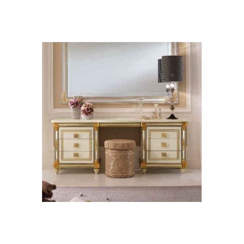 Итальянский элитный туалетный стол на двух тумбах из коллекции Liberty фабрики Arredo Classic (Арредо Классик). Изящный дизайн стола выполнен в классическом итальянском стиле с акцентом на элегантность и утончённость форм. Покрытие в благородном оттенке слоновой кости гармонично сочетается с декоративной шелкографией и ручным сусальным золочением. Фурнитура с 24-каратным позолоченным покрытием подчёркивает роскошный характер изделия. Декоративные вставки, аккуратная резьба и плавные линии придают туалетному столику особое очарование. Оснащен 6 выдвижными ящиками.