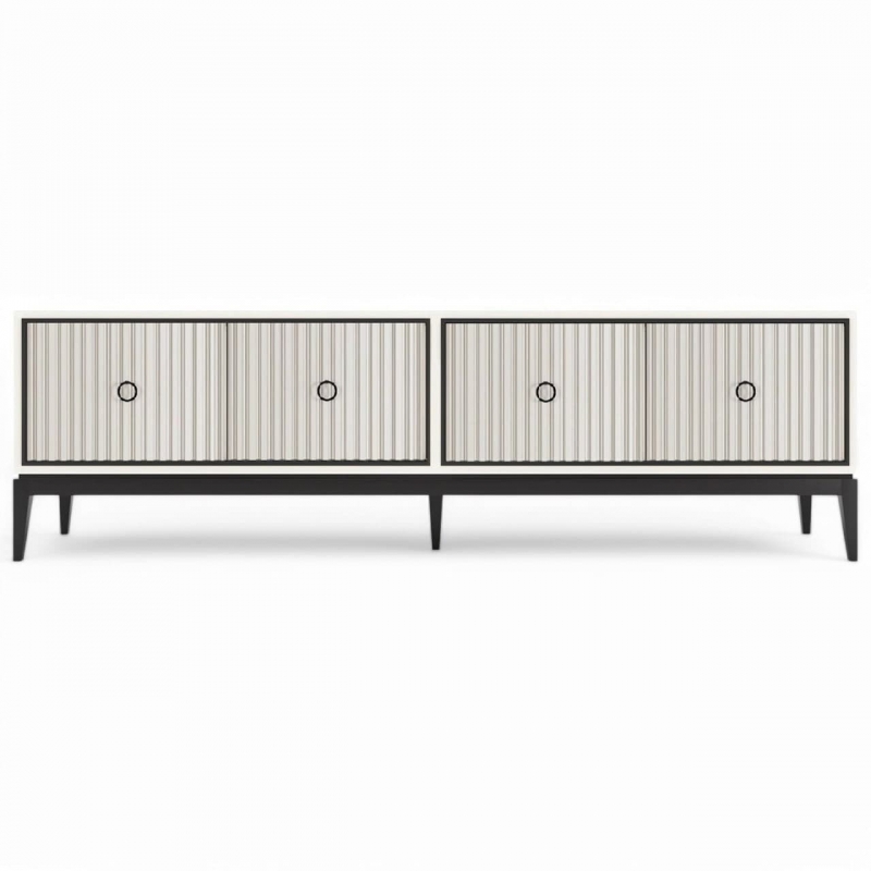 Дизайнерская Тумба пот телевизор из коллекции Ницца бренда Classico Italiano, арт. 8050/L/BL/BL. Дизайн телевизионной тумбы выполнен в американском варианте стиля Ар-деко. Тумба ТВ на высоких ножках, выполненная из качественного массива бука и дополняется МДФ. ТВ тумба оснащена четырьмя дверцами с доводчиками. Фасадная часть дверей тумбы украшена каннелюрами.