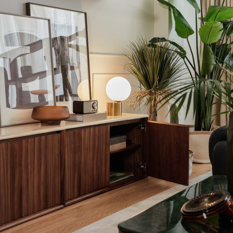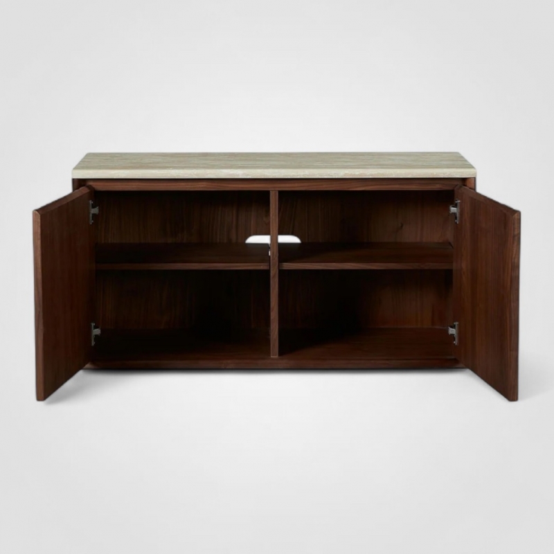 ТВ Тумба Hotel Paradiso, арт. 02468, линейки Commune от бренда Art Fabric — изысканное сочетание тёплого американского ореха и натурального травертина. Компактная, но выразительная, она создана для тех, кто ценит утончённый современный дизайн, природные текстуры и продуманную функциональность. Телевизонная тумба оснащена двумя дверцами на доводчиках.