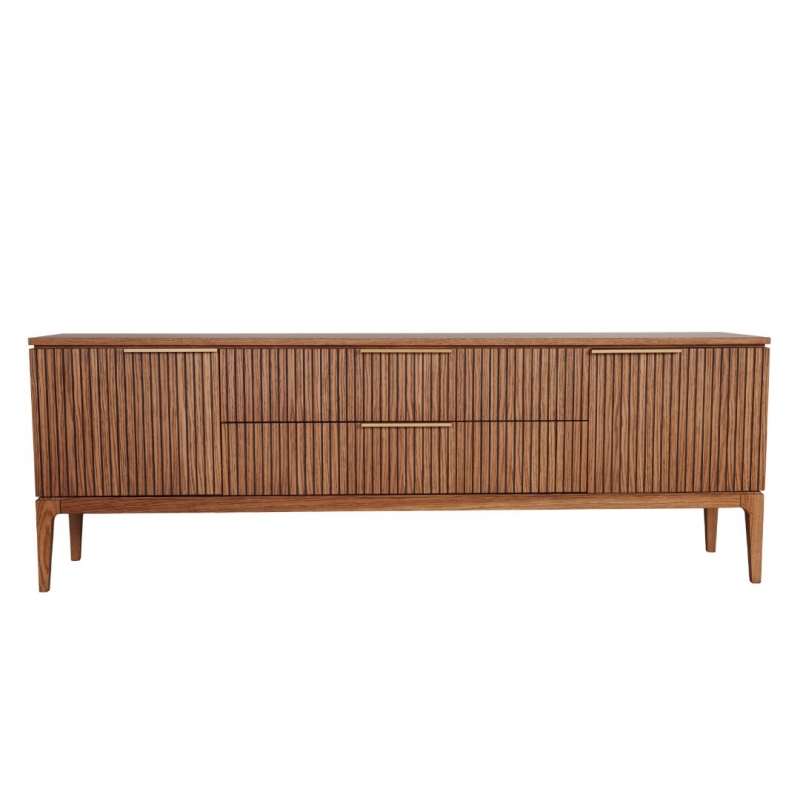 Элегантная тумба под телевизор из коллекции Bryce бренда Vissam (арт. 21022.01) выполнена в американском стиле и станет выразительным акцентом в интерьере спальни. Дизайнерская тумба ТВ Bryce на высоких ножках оснащена 2 дверцами и 2 ящиками с доводчиками, обеспечивающим плавное и бесшумное закрывание. Рельефный фасад из вертикальных реек придаёт поверхности визуальный ритм и глубину, подчёркивая современный характер модели.