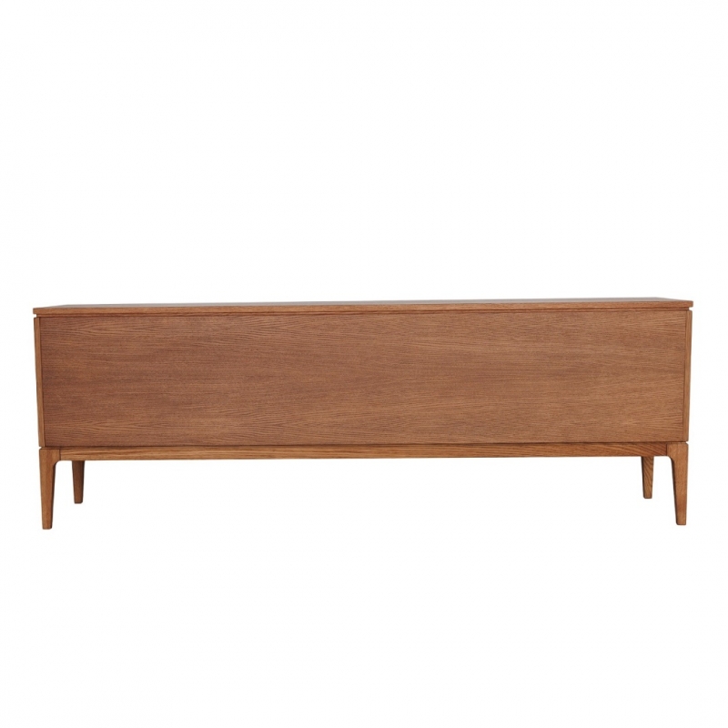 Тумба под ТВ изготовлена из массива дуба, МДФ и шпона дуба, что обеспечивает прочность конструкции и долговечность эксплуатации.