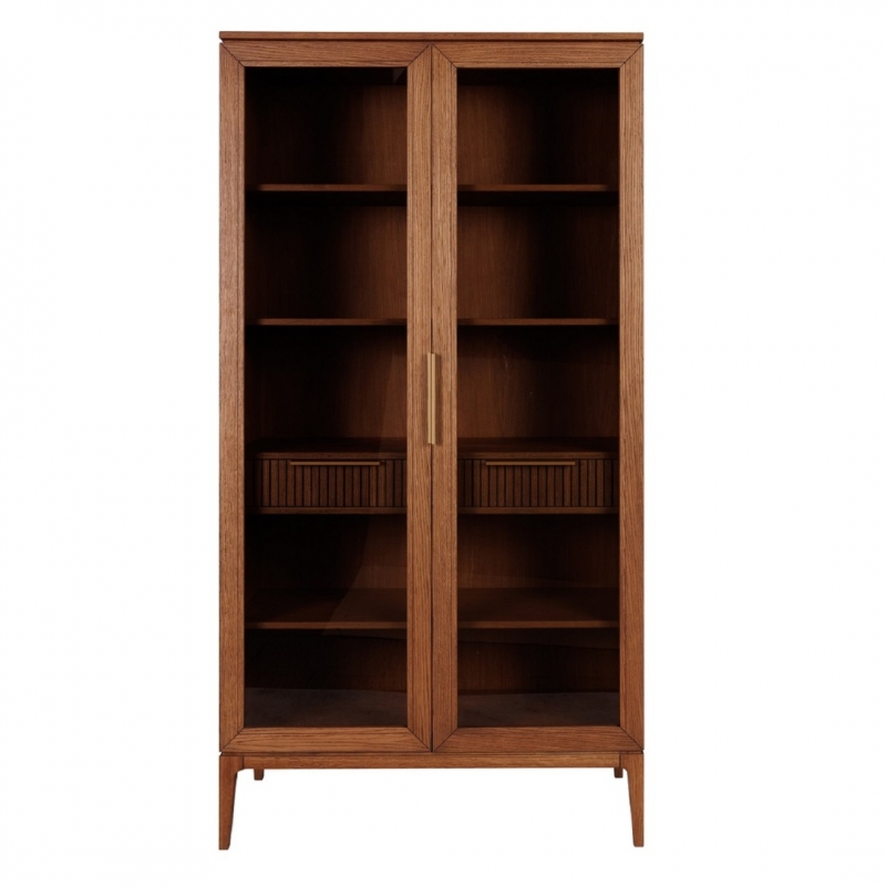 Витрина изготовлена из массива дуба, МДФ и шпона дуба, что обеспечивает прочность конструкции и долговечность эксплуатации.