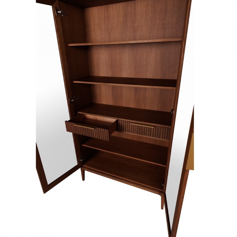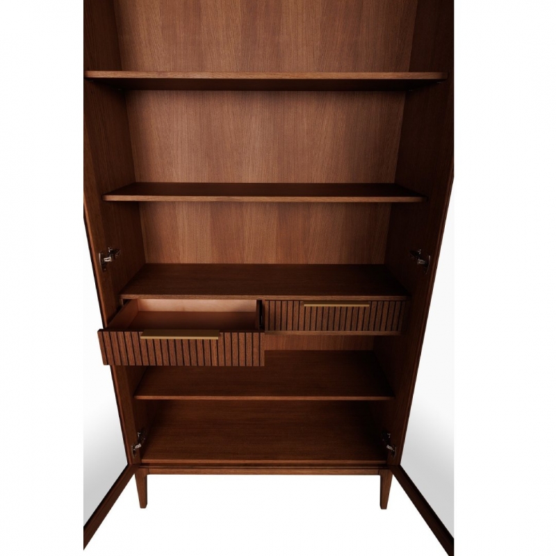 Представительская 2-дверная витрина из коллекции Bryce бренда Vissam (арт. 21026.01) выполнена в американском стиле и станет выразительным акцентом в интерьере гостиной. Дизайнерская витрина Bryce на высоких ножках оснащена двумя внутренними выдвижными ящиком с доводчиками, обеспечивающими плавное и бесшумное закрывание. Рельефный фасад из вертикальных реек придаёт поверхности визуальный ритм и глубину, подчёркивая современный характер модели.