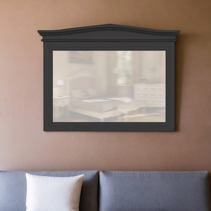 Дизайнерское горизонтальное зеркало Majessa (Aletan, арт. М104BL) в чёрном цвете — элегантное решение для спальни в неоклассическом стиле. Зеркало Алетан Маджесса изготовлен из массива дерева и МДФ с многослойной эмалевой отделкой, гарантирующей долговечность.
