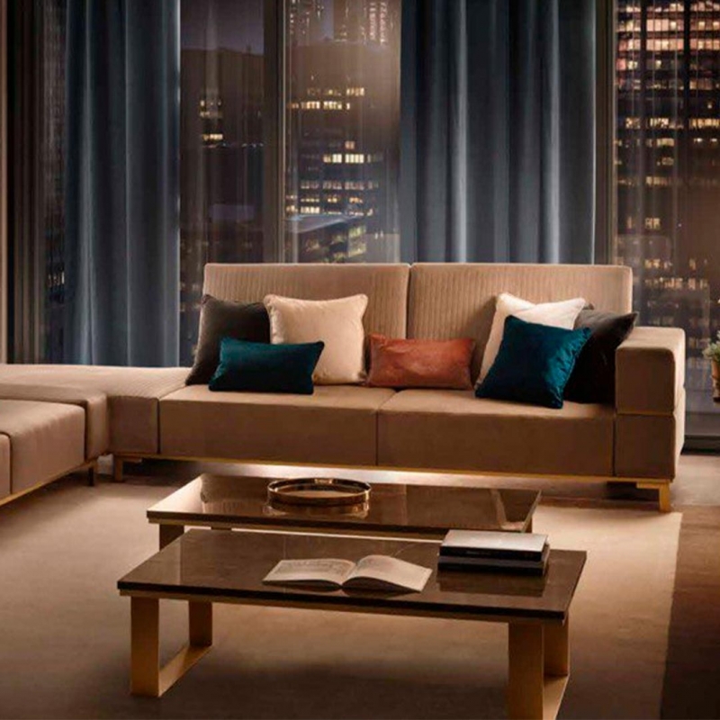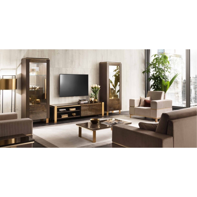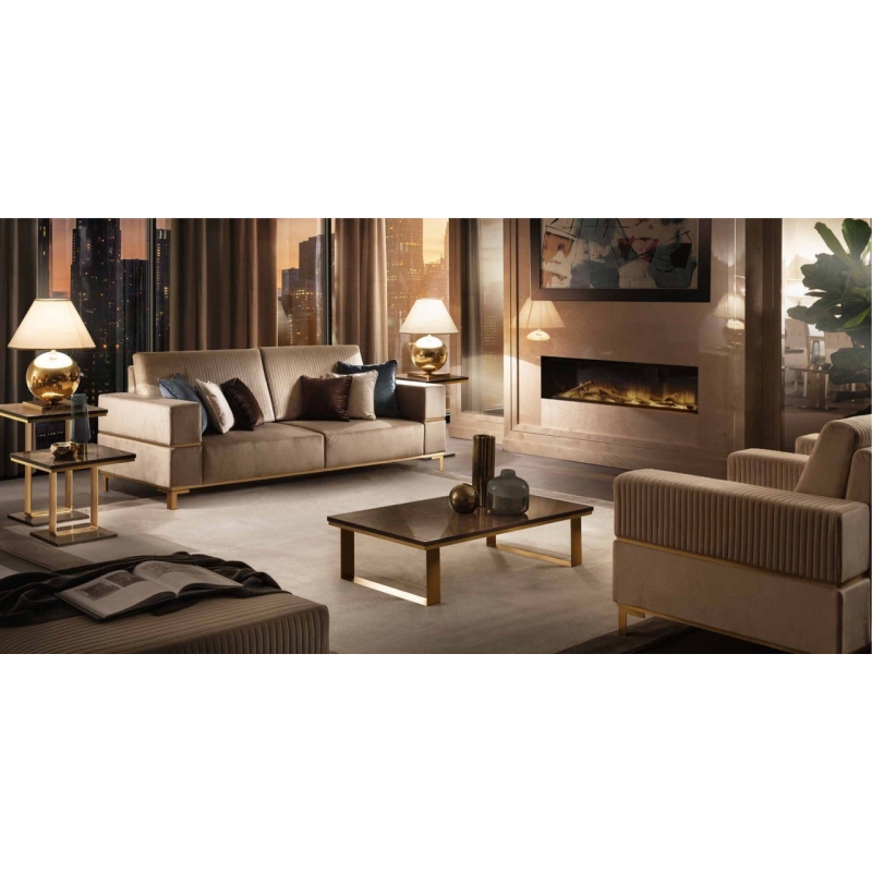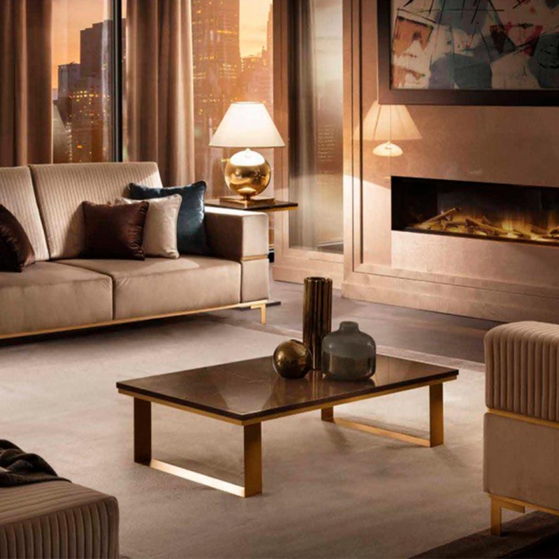 Дизайнерский большой прямоугольный журнальный стол из коллекции Essenza, линейки Adora фабрики Arredo Classic, Италия. Размер стола 120х60 см. Столик удобно разместить перед диваном в зоне отдыха. Роскошная столешница, с отделкой под мрамор и глянцевым покрытием дополнена деталями из сатинированной бронзы.